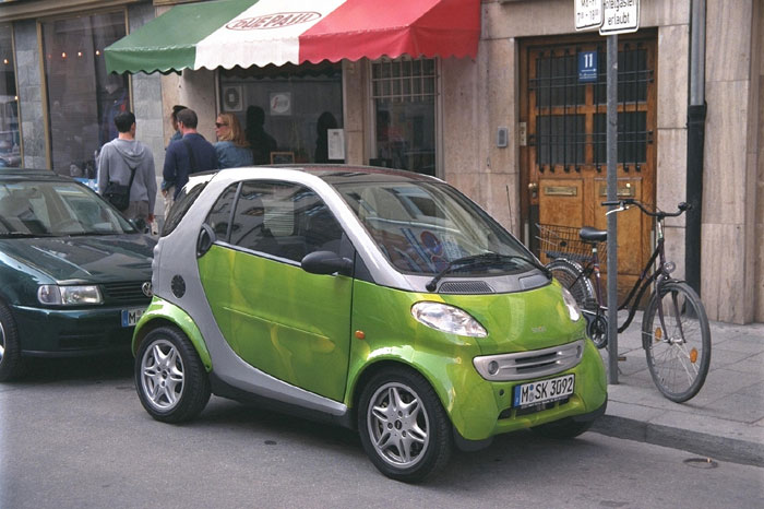Mouse over the original to see a somewhat more aggressive Smart Car.